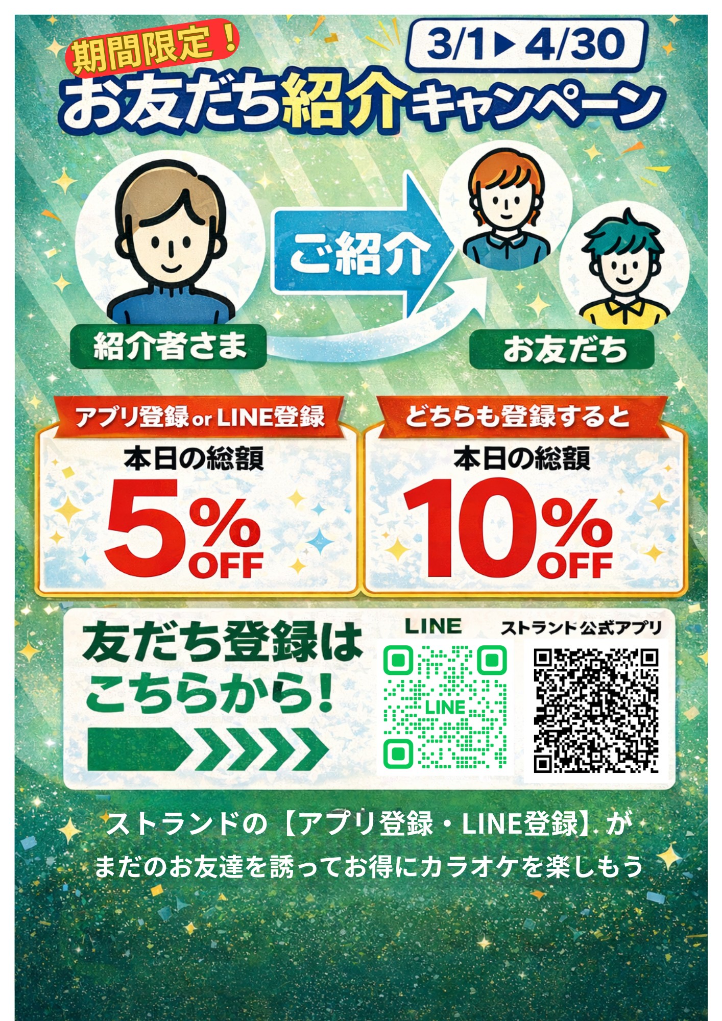 アプリ会員・LINE友だち紹介キャンペーン開催します!(^^)!